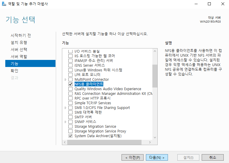 3. 윈도우 서버에 NFS Client 기능 설치