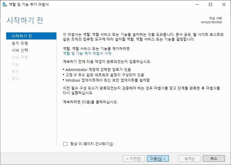 서버 관리자에서 역할 및 기능 추가 실행